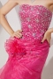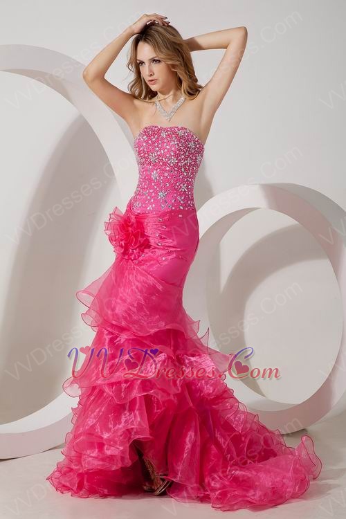Fuchsia Flowers Decorate Beaded Mermaid Layers Evening Dress