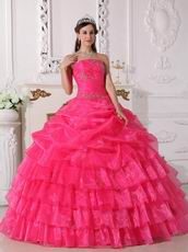 Hot Pink Organza Cascade Gangnam Style Quinceanera Dress