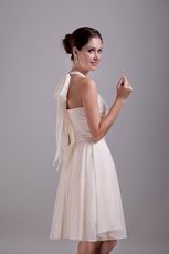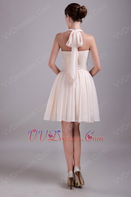Beaded Short Chiffon Prom Dress Light Yellow With Halter