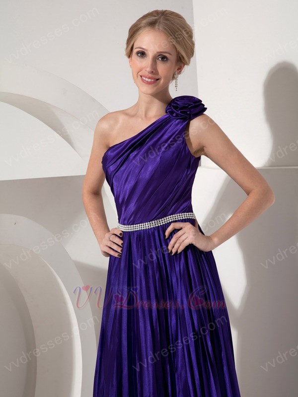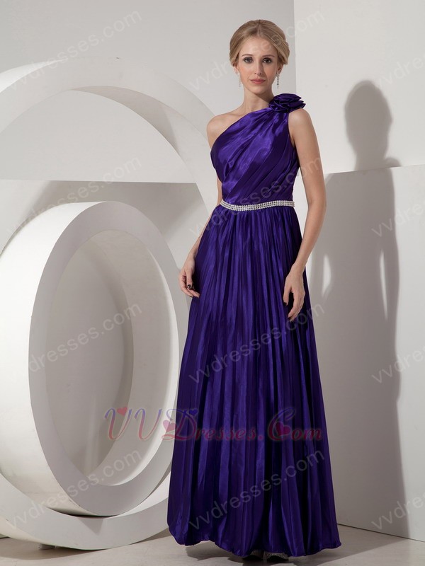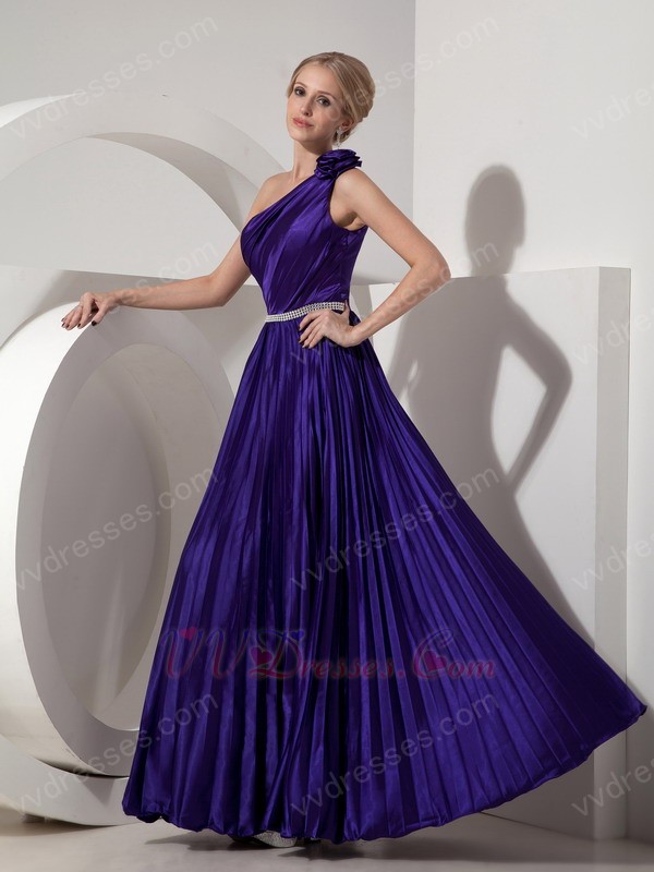 Dark Blue Purple One Shoulder Ankle-length Pleated Prom Dress
