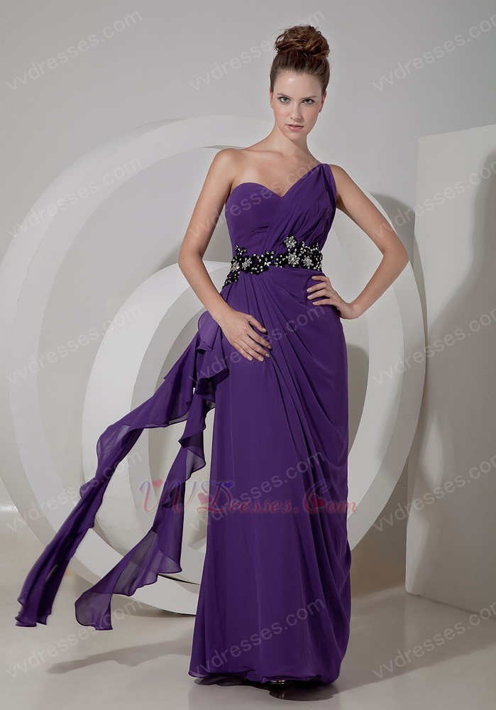 Floor-length Side Cascade Eggplant Purple Chiffon Prom Dress Discount