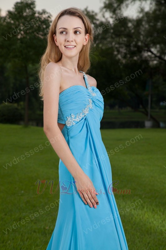 One Shouler Cross Back Aqua Chiffon Hot Sell Prom Party Dress
