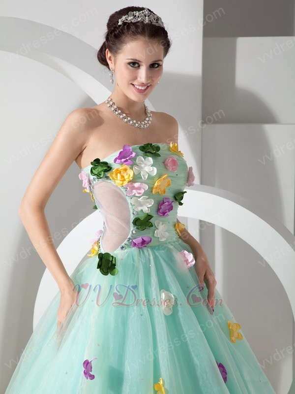 Pale Turquoise La Femme Prom Dress With Colorful Flowers