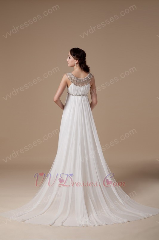 Scoop Ivory Chiffon Maternity Prom Dress With Pearl Decorate