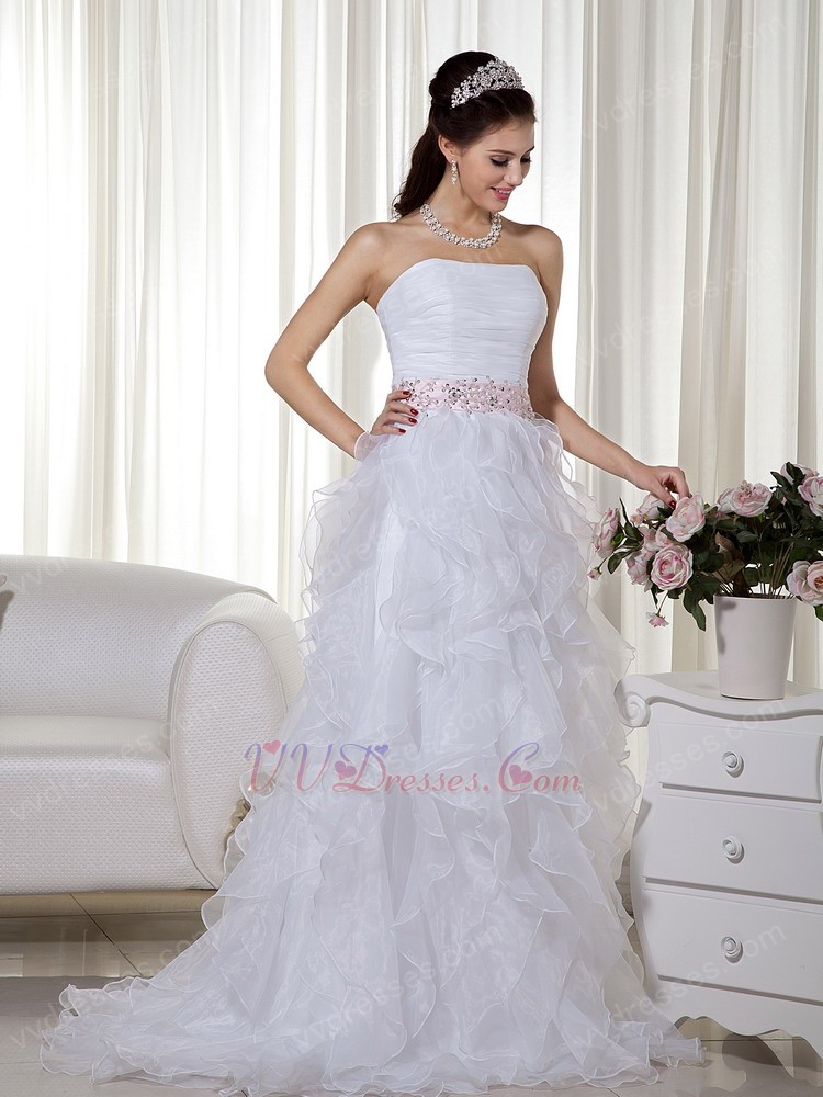 White Stapless Ruffled Skirt White Organza Prom Dress With Beads