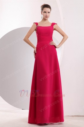 Wide Straps Square Neck A-line Cerise Red Prom Gown Dress
