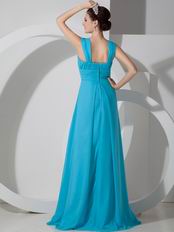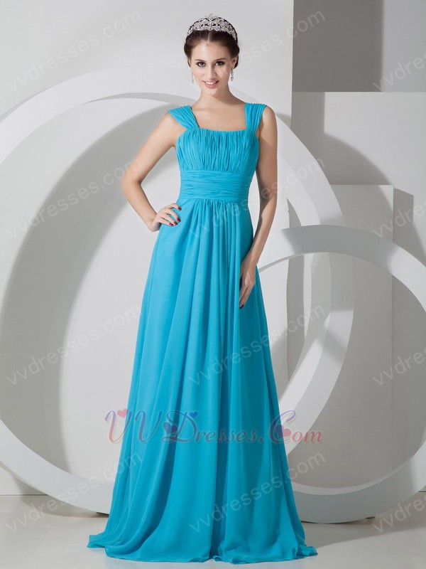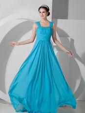 Wide Straps Square Neck Long Best Deals Azure Blue Prom Dress