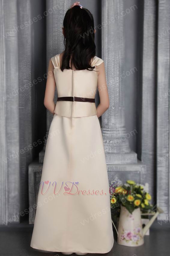 Champagne Column Square Floor-length Satin Appliques Flower Girl Dress