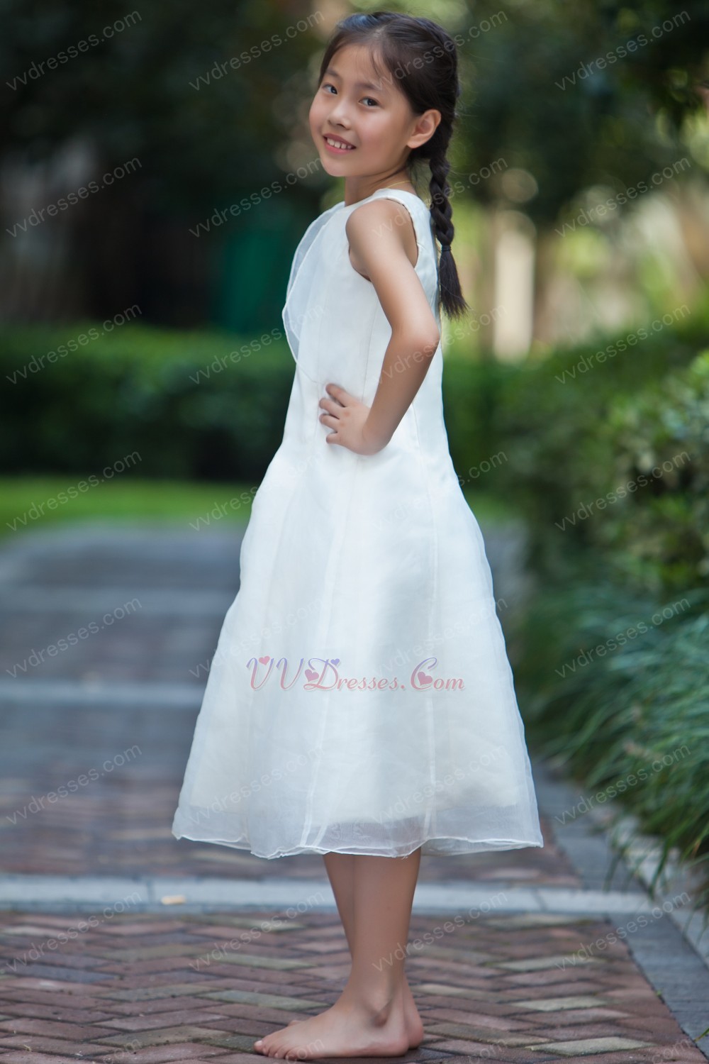 Cheap Scoop Ankle Length Ivory Organza Toddler Flower Girl Dress