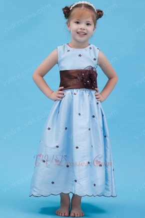 Lovely Scoop A-line Belt Blue Taffeta Toddler Flower Girl Dress