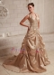 Halter Top Neck Taffeta Champagne Wedding Dress With Embroidery Pregnant