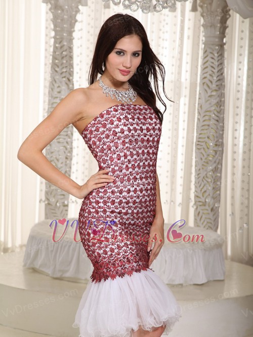 2014 Cheap Red Lace Prom Dress With Mermaid Skirt Design Knee Length Sexy