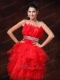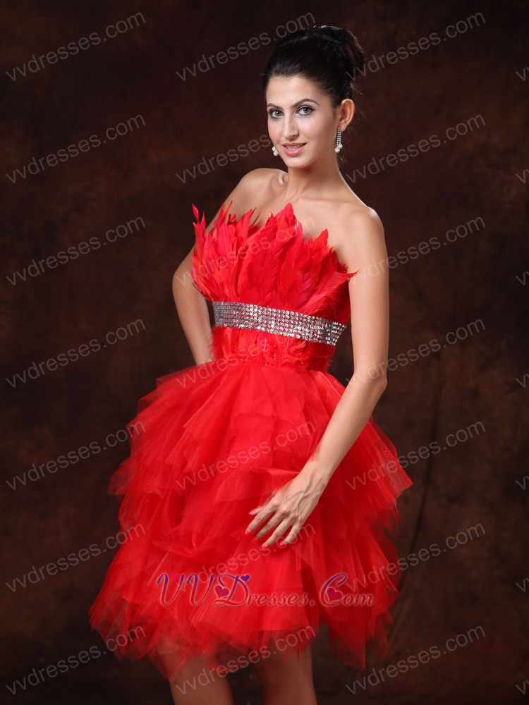 Amazing BodyU Feather Short Red Skirt Engagement Gowns Customize Made