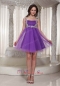 Appliques Decorate Straps Short Purple Sparkle Tulle Prom Dress For Maternity