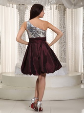 Dark Purple One Shoulder Short Prom Dress Sequin and Taffeta Knee Length Sexy