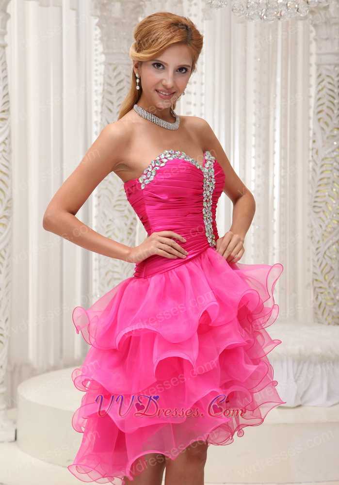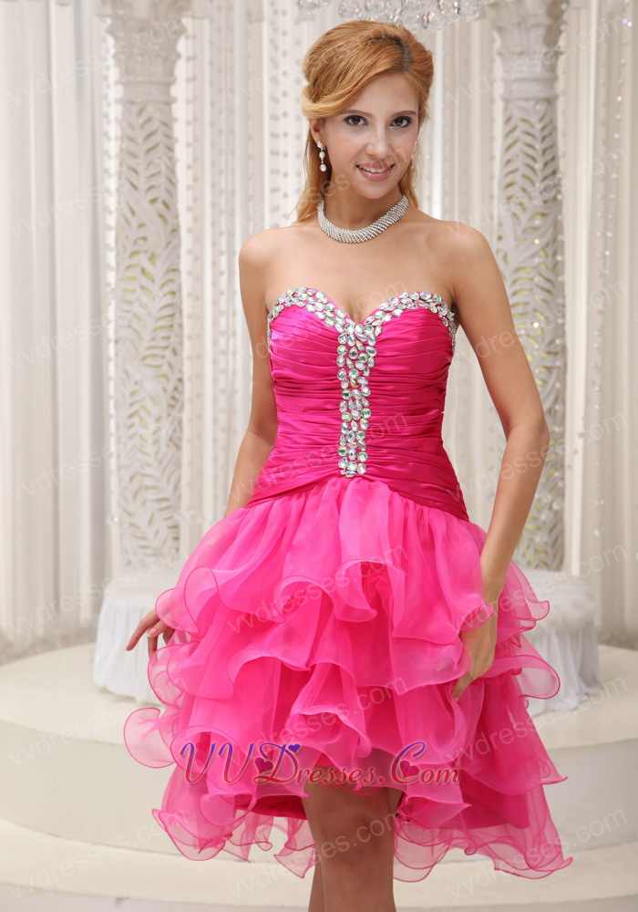 Lovely Hot Pink High-low Organza Cocktail Gown 4 Layers Skirt Popular