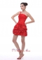 One Shoulder Hand Made Flowers Ruched Mini-length Red Homecoming Dress