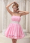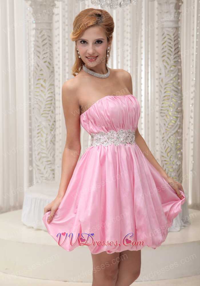 Pink Strapless Beaded Sash Mini-length Homecoming Dress Online