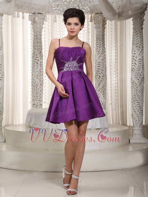 Purple Beading Decorate Spaghetti Straps Prom Dresses Mini Knee Length Sexy
