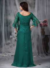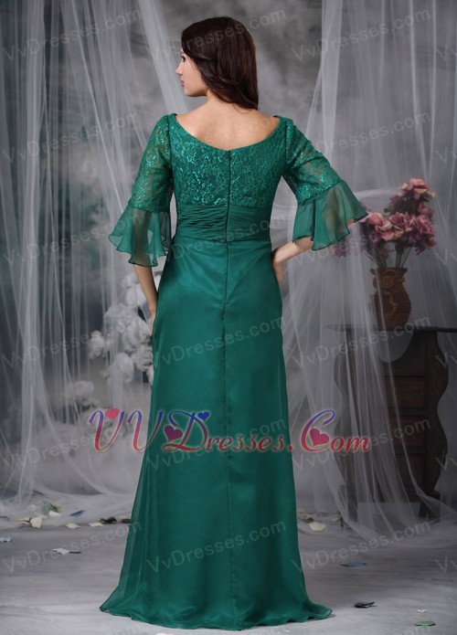 Dark Green Mother of the Bride Dress With Lace Half Sleeves Modest