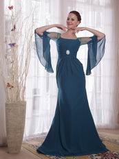 Square Marine Blue Long Sleeves Mother of the Bride Dress