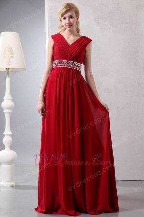 Wine Red V Neck Mother Of The Bride Dress With Beading
