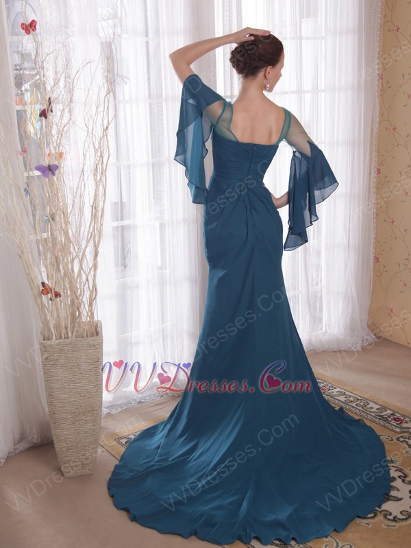 Square Marine Blue Long Sleeves Mother of the Bride Dress