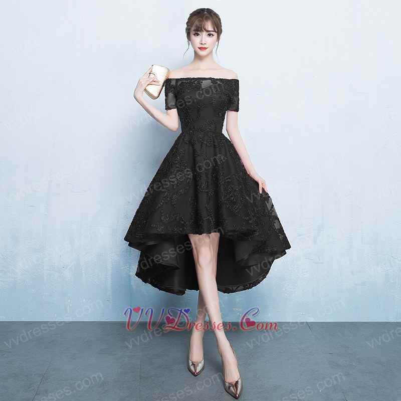 Black Crooked Lace Cocktail Dance Dresses Front Shot Back Long