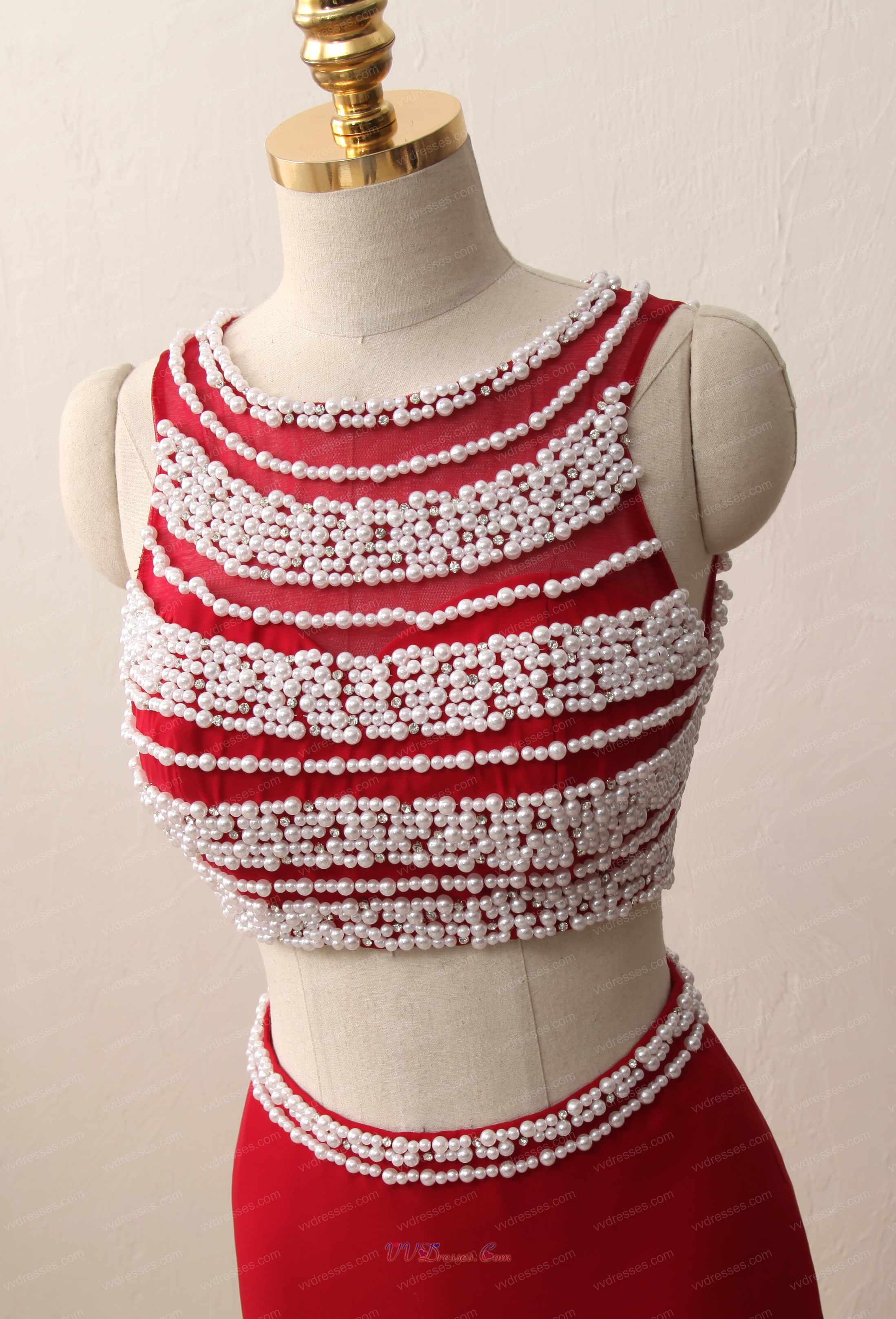 Elegant Fully Pearl Decorated Floor Length Prom Gowns Cheap Amazon
