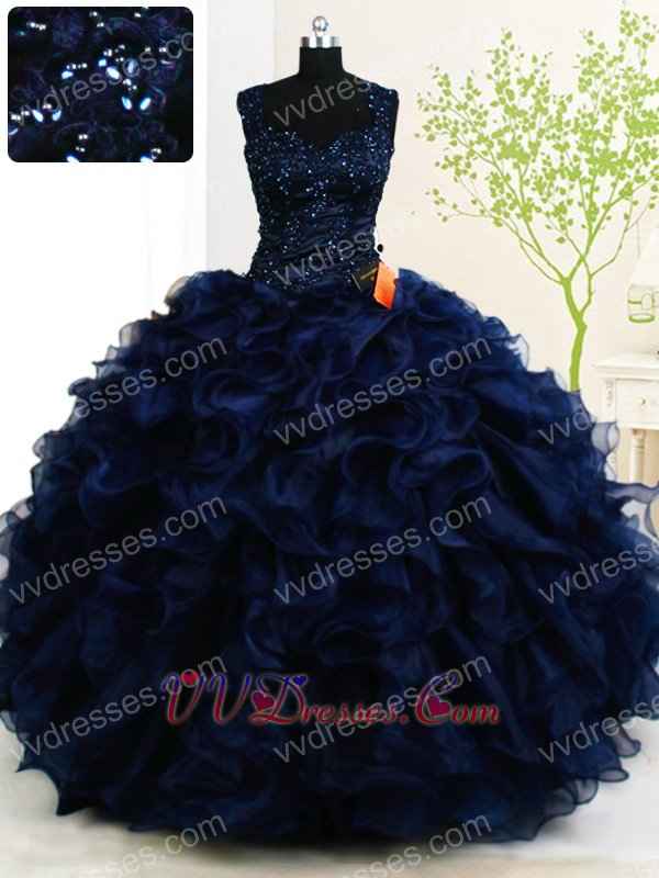 Dark Royal Blue Full Thick Ruffles Ball Gown Vestidos De Quinceanera