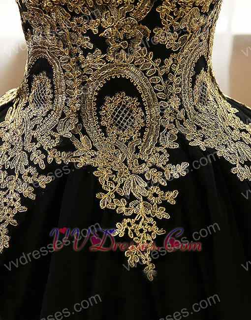 Gold Pineapple Flower Pattern Applique Puffy Tulle Black Court Ball Gown Lady Wear