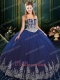 Western Quinceanera Ball Gown Dark Royal Blue With Silver Embroidery