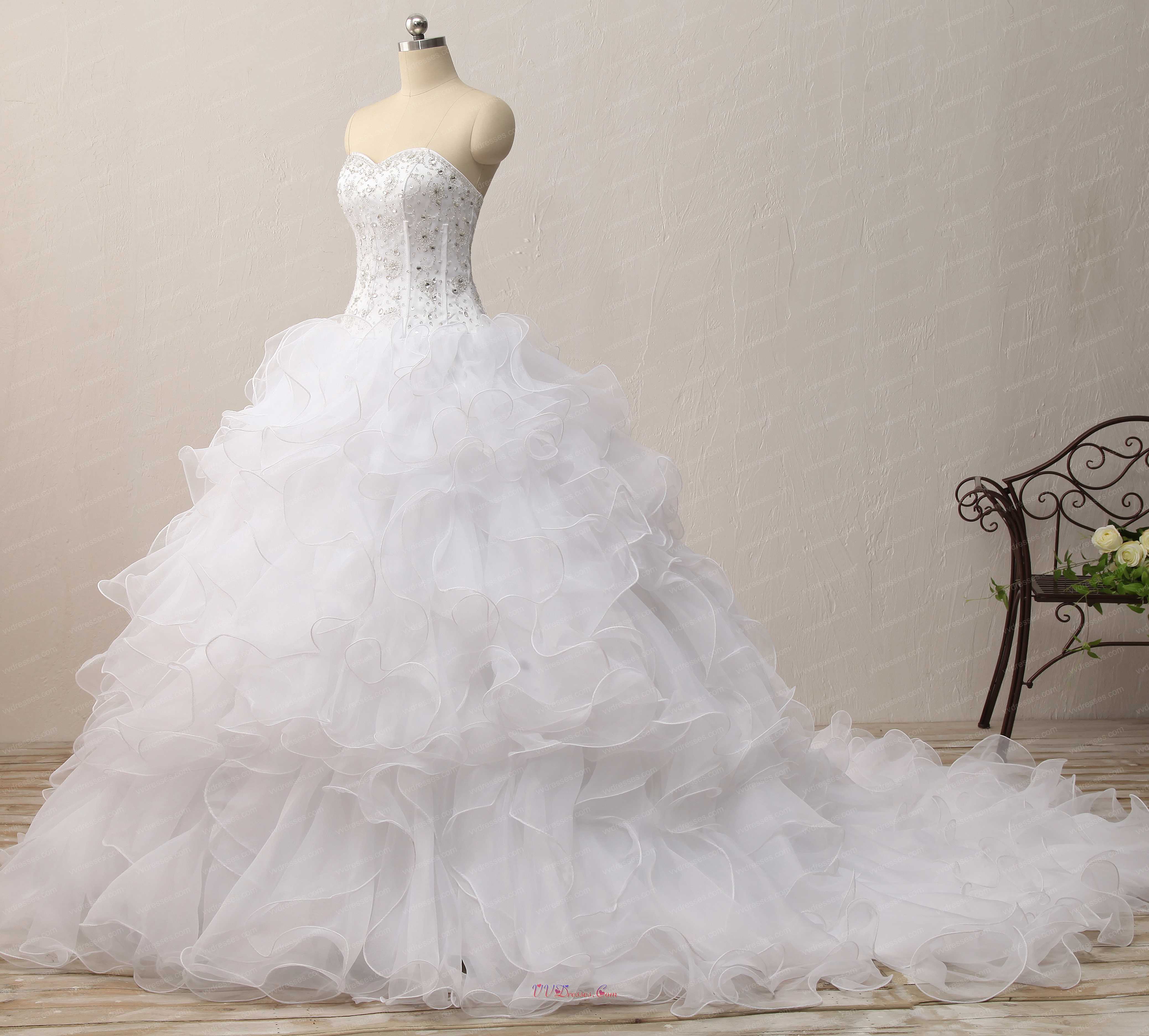 Ruffles Skirt Affordable White Court Train Wedding Gowns China