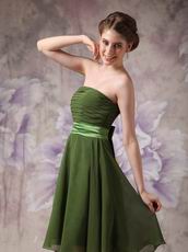 Strapless Olive Green Beach Bridesmaid Dress With Sash