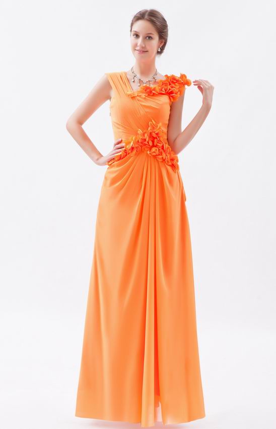 Beautiful V-Neck Bright Orange Chiffon Prom Dress With Side Flowers