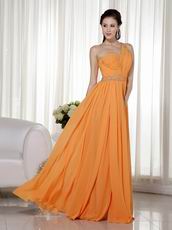 One Shoulder Orange Floor Length Cache Prom Dress With Beading