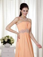 Strapless Sleeveless Apricot Orange Chiffon Celebrity Dress