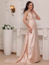 Empire Waist Backless Sexy Pink Celebrity Pageant Dress For Lady