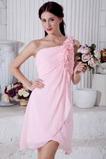 One Shoulder Flowers Straps High Low Pink Sweet Sixteen Dress