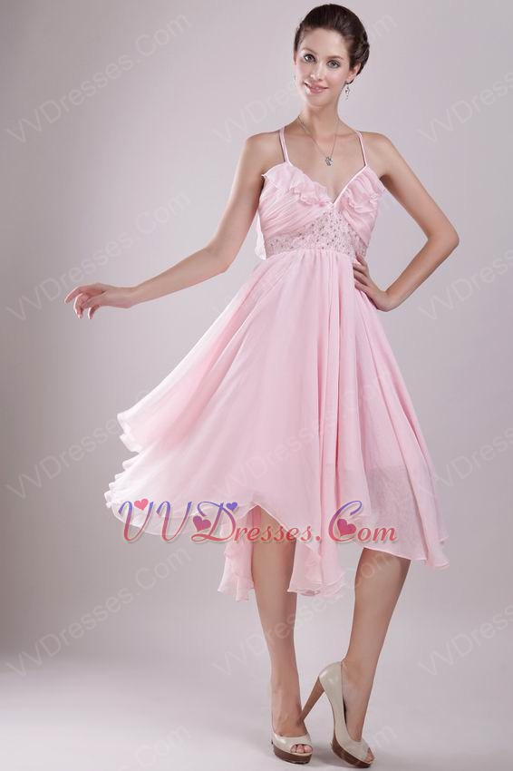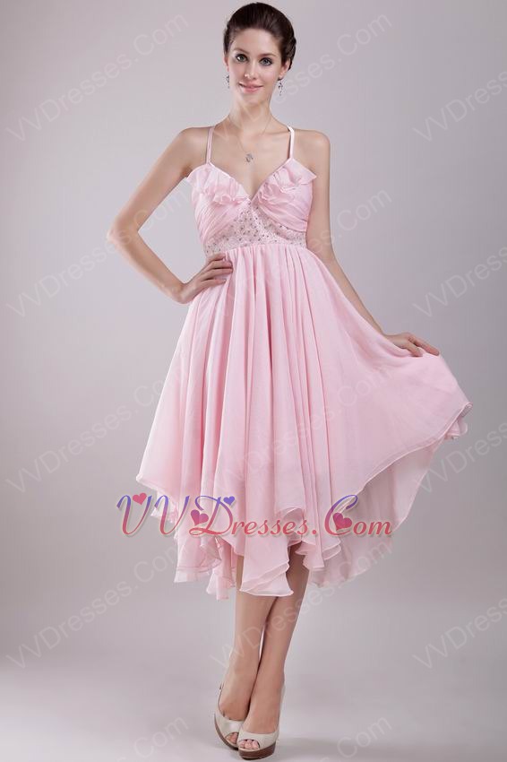 Pink Short Prom Dress With Spaghetti Straps Asymmetrical Skirt