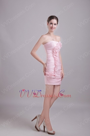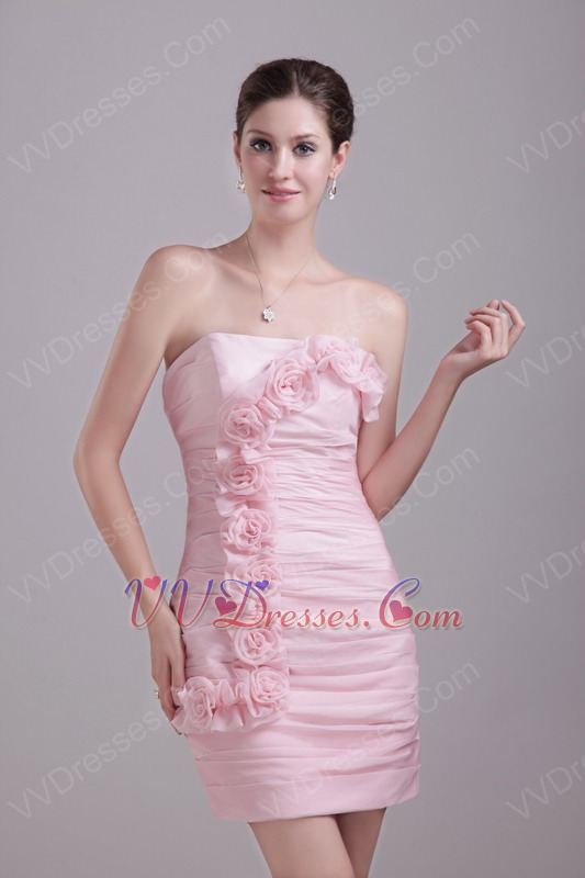Strapless Sheath Baby Pink Short Prom Dress With Rosette Decorate