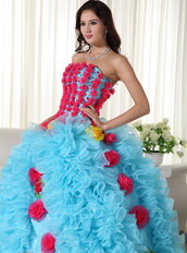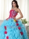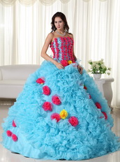 Aqua Quinceanera Dress With Rose Pink Flowers Bodice and Skirt Like Princess
