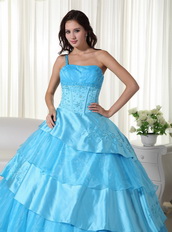 Cheap Aqua One Shoulder Layers Skirt Dress For Quinceanera Like Princess