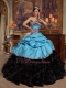 Aqua Blue And Black Bubble Cascade Skirt Dress For Quinceanera Party