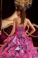 Hot Pink Ball Gown Sweetheart Leopard Print Floor-length Beading Leopard and Organza Quinceanera Dress Sweetheart Hot Pink Organza And Leopard Print Ruffled Quinceanera Dress