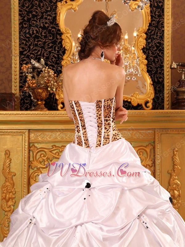Stylish Ball Gown Ruffles White And Leopard Print La Quinceanera Dress