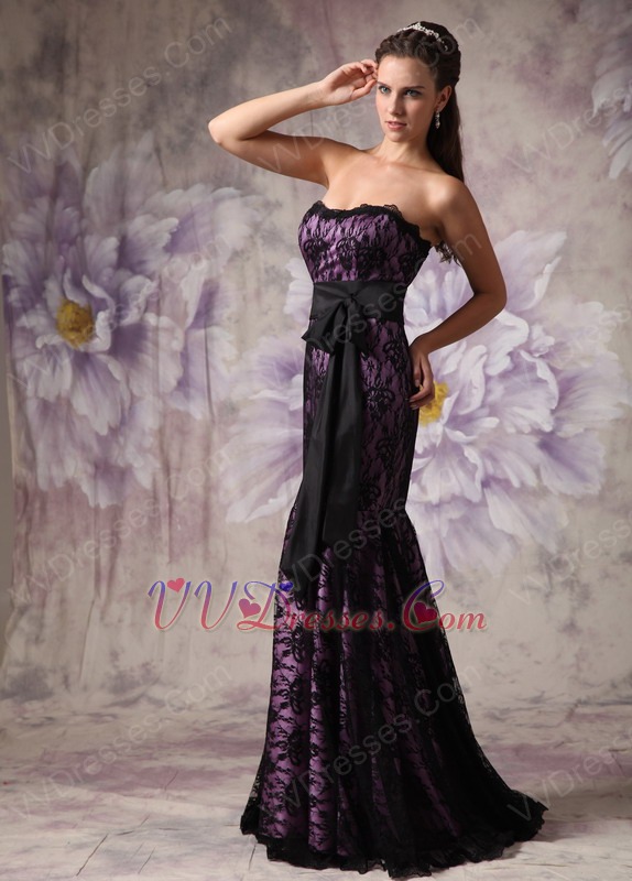 Strapless Mermaid Black Lace Prom Dress With Bowknot Design