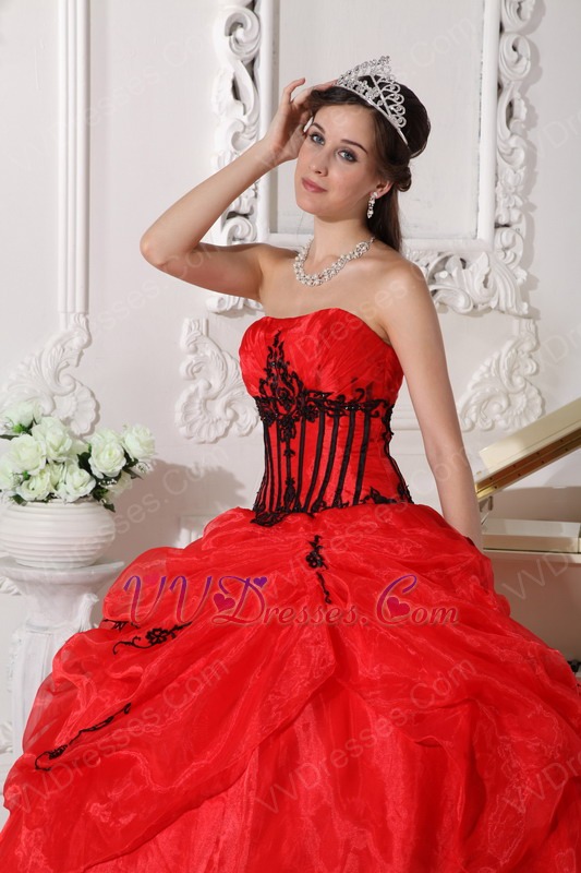 Scarlet Sweetheart Quinceanera Dress With Black Embroidery