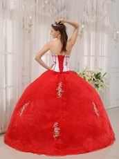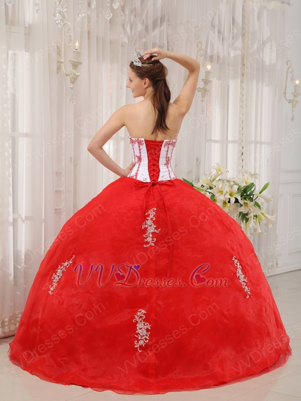 Sweetheart Appliqued Basque Waist Skirt Red Quinceanera Dress