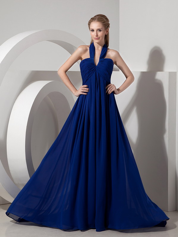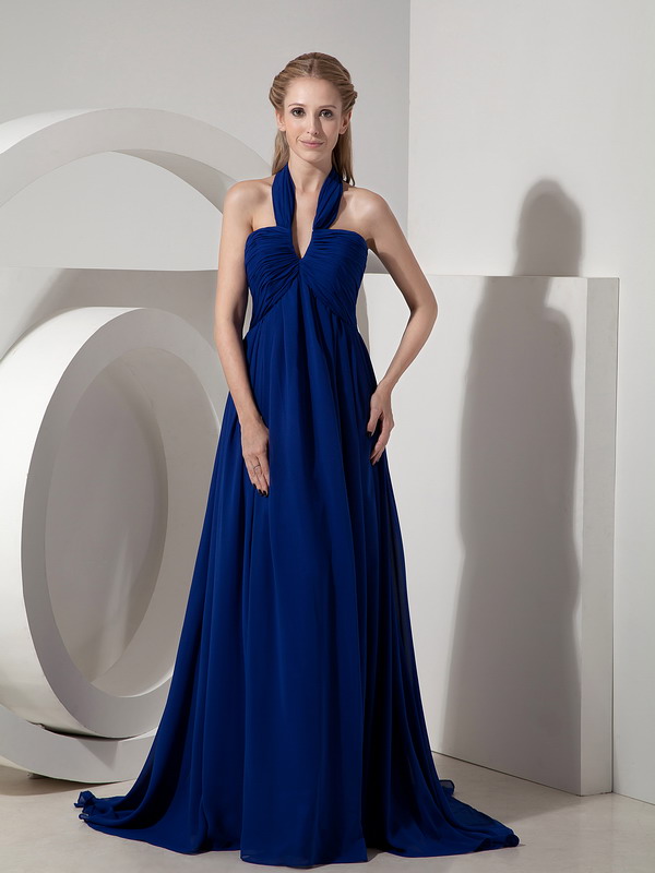 Halter Watteau Train Royal Blue 2014 Top Designer La Prom Dress
